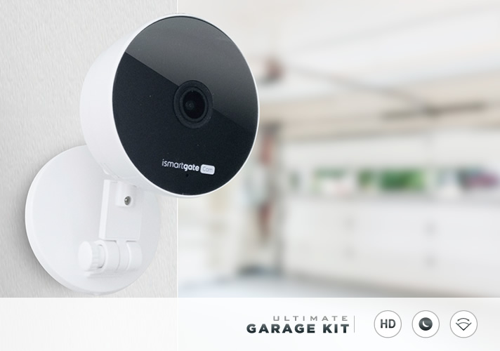 Watch and record events in your garage remotely from your phone, tablet or PC using the ismartgate app. Additional IP Camera required.
